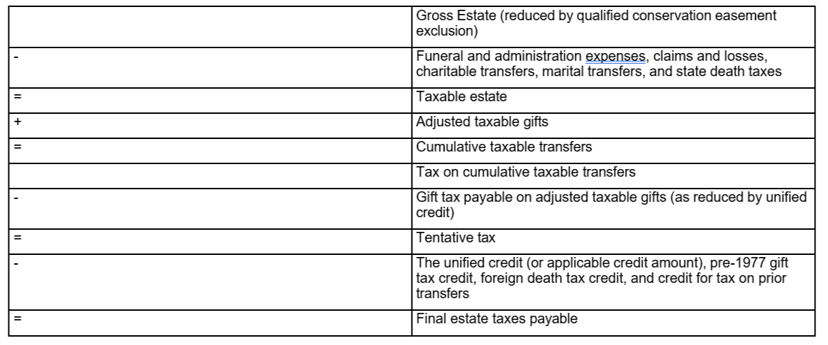 Calculating estate taxes is similar to calculating income taxes. It is basically a four-step process: